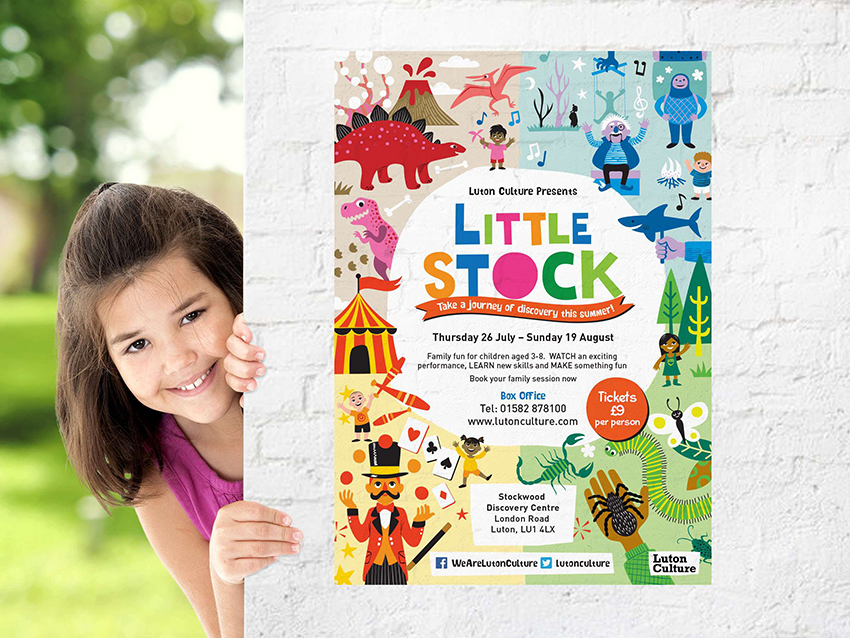 With the feel of a family festival in mind, we came up with the event name, Little Stock, along with an accompanying strong visual identity which our client loved. To promote each week’s theme, we designed posters and flyers, social media content and press materials featuring fun, family-friendly illustrations to engage with regular visitors and attract new ones.