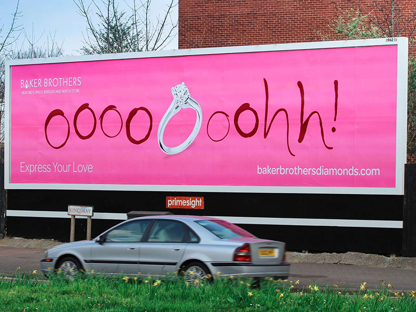 To appeal to couples tying the knot, we needed an integrated approach that would reposition Baker Brothers as the ‘contemporary diamond experts’. So we let people’s reactions speak for themselves, with the jewellery as hero in our ‘express your love’ campaign. Concepts were bold, bright and unique to the jewellery sector.